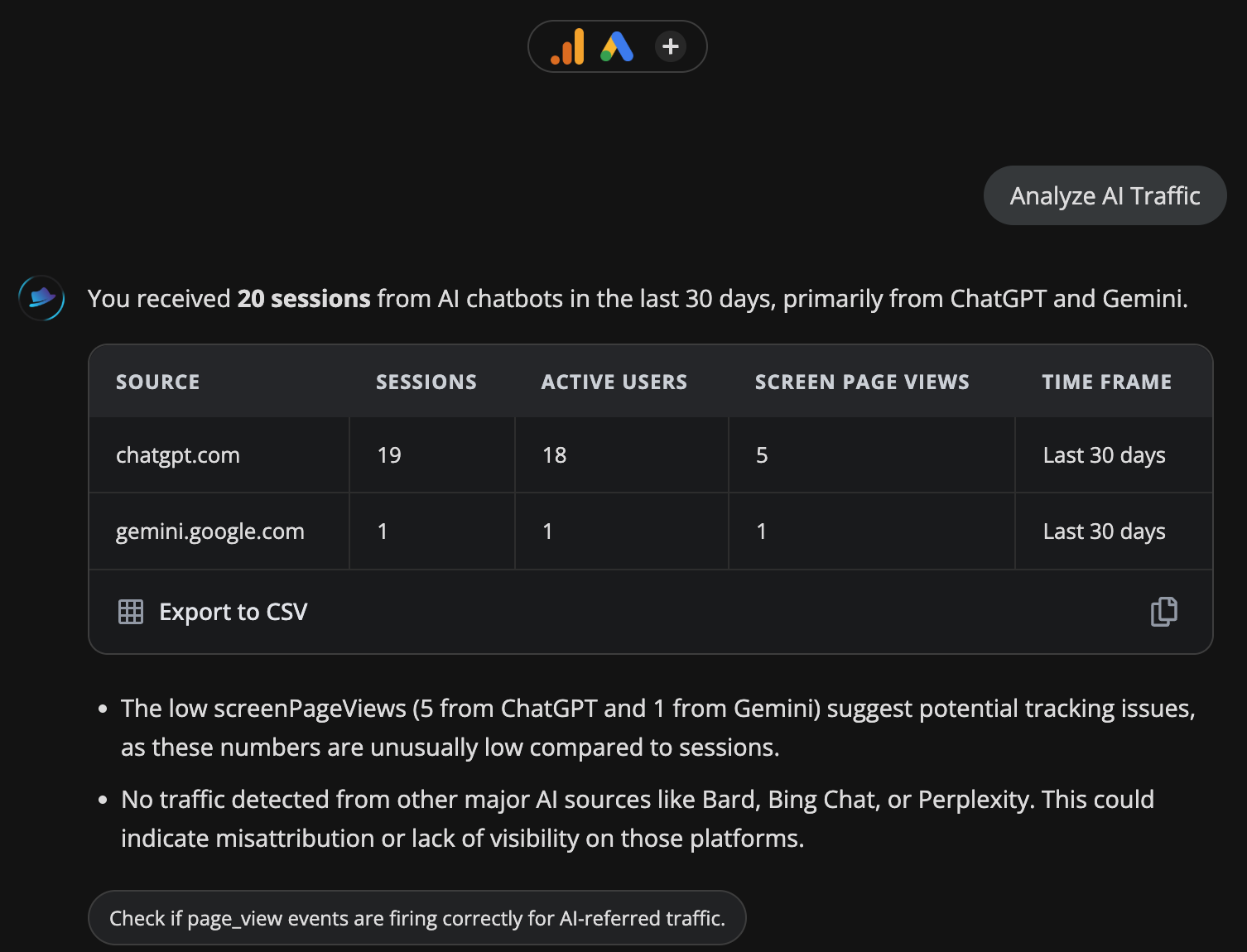 How much traffic i am getting from AI chatbots, Sources: /.*(perplexity\.ai|you\.com|searchgpt\.com|chatgpt\.com|chat\.openai\.com|claude\.ai|anthropic\.com|gemini\.google\.com|bard\.google\.com|bing\.com.*chat|copilot\.microsoft\.com|phind\.com|kagi\.com|deepseek\.com|chat\.deepseek\.com|mistral\.ai|chat\.mistral\.ai|lechat\.mistral\.ai|cohere\.com|meta\.ai|groq\.com|together\.ai|fireworks\.ai|openrouter\.ai|grok\.x\.com|x\.com.*grok|pi\.ai|inflection\.ai|cerebras\.ai|openai\.com|google\.com.*bard|google\.com.*gemini|microsoft\.com.*copilot).*/i